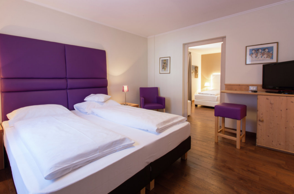 Le nostre camere triple dispongono di un letto matrimoniale e un letto singolo, arredo rustico ed elegante, pavimenti in legno, minibar e grande schermo TV. Nel prezzo della camera è inclusa la prima colazione a buffet.
